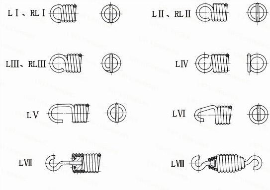 由(yóu)彈簧末端的(de)簧圈彎至中心而成,它彎曲的曲率半徑大,故(gù)彎曲處應力集中程度較LⅢ型低,折(shé)斷(duàn)的可能性較小。常用於旋繞比較小的拉簧。